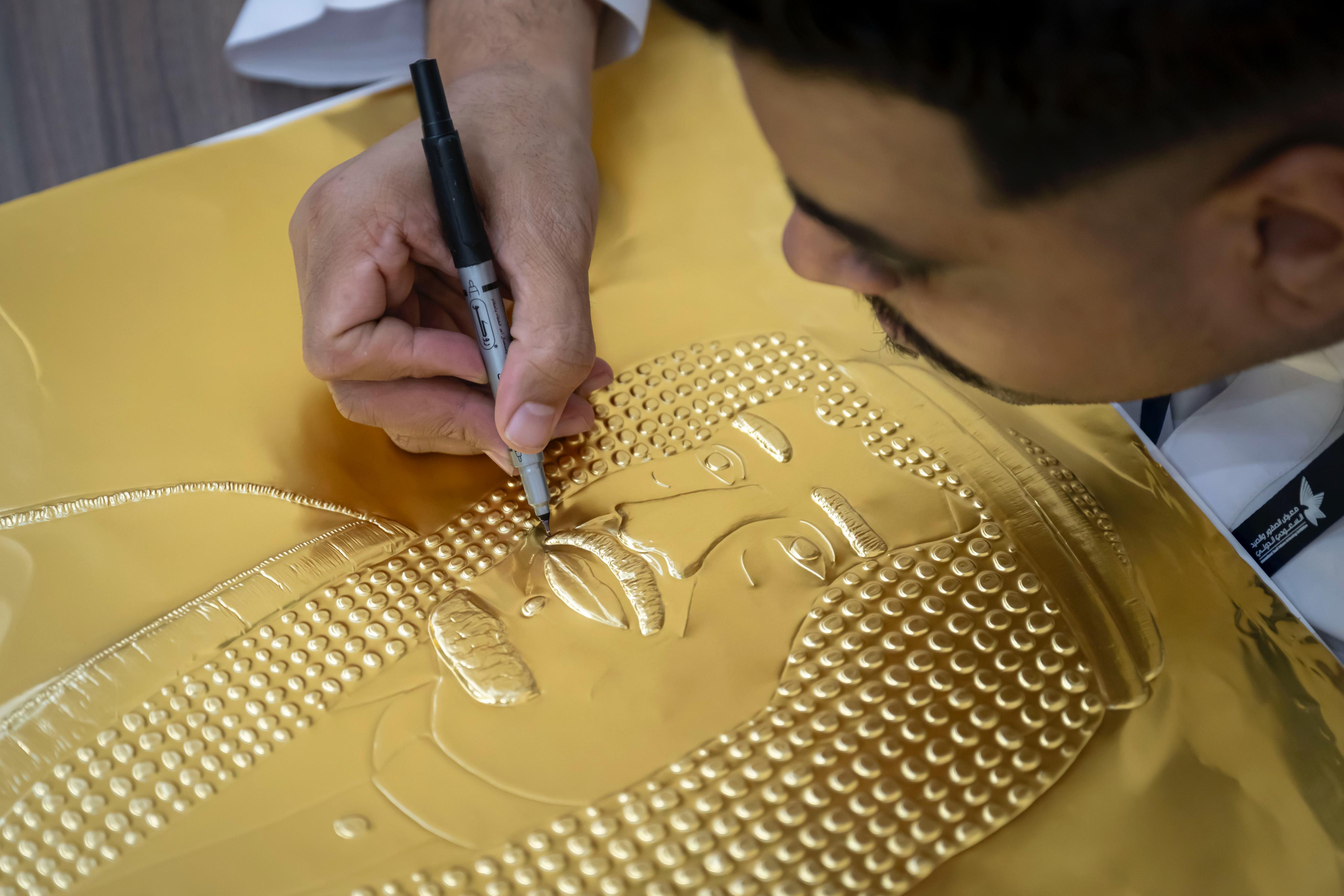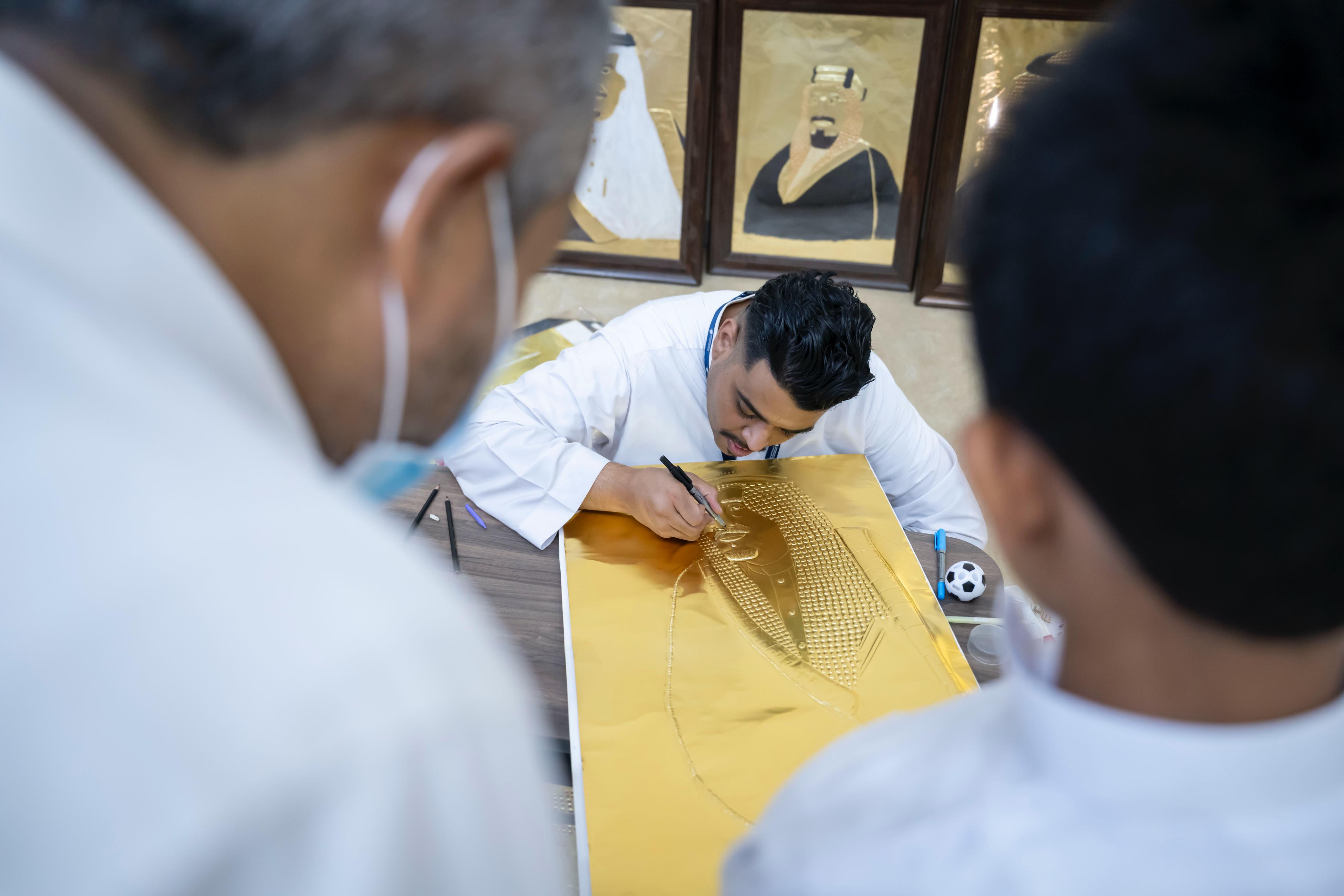 وينجز الفنان أسامة الحربي لوحة فنية جديدة كليًا باستخدام أسلوب التخطيط بالرصاص، ثم النقش على النحاس وتلوينه من الخشب الخشبي، مع إضافة من الصوف الفلين أسفل اللوحة الذكية للعمل بروزًا ذا بعد ذلك.